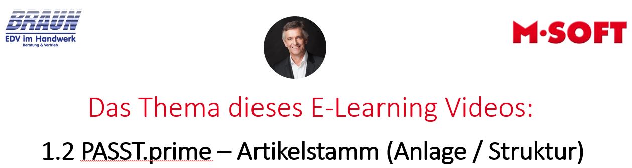 E-Learning Video 1.2: PASST.prime - Artikelstamm (Anlage / Struktur)