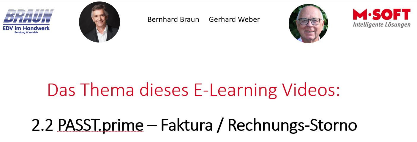 E-Learning Video 2.2: PASST.prime – Faktura / Rechnungs-Storno