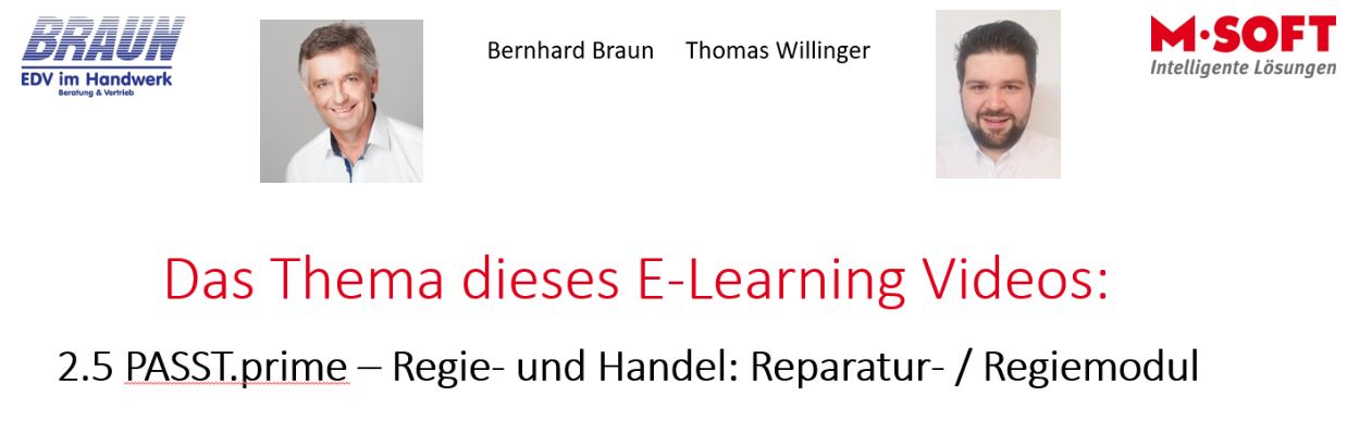 E-Learning Video 2.5: PASST.prime – Regie und Handel: Reparatur- / Regiemodul