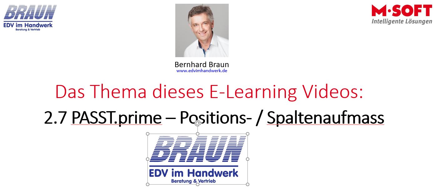 E-Learning Video 2.7: PASST.prime –Aufmaß: Positions-/Spaltenaufmaß