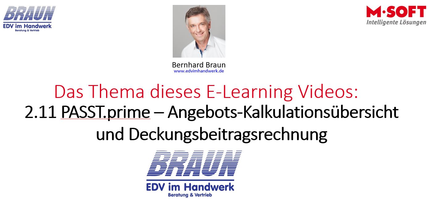 E-Learning Video 2.11: PASST.prime – Angebot-Kalkulationsübersicht / Deckungsbeitragsrechnung