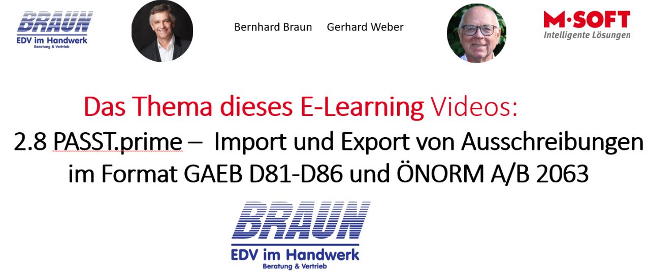 E-Learning Video 2.8: PASST.prime – GAEB D81-D86 und ÖNORM A/B2063