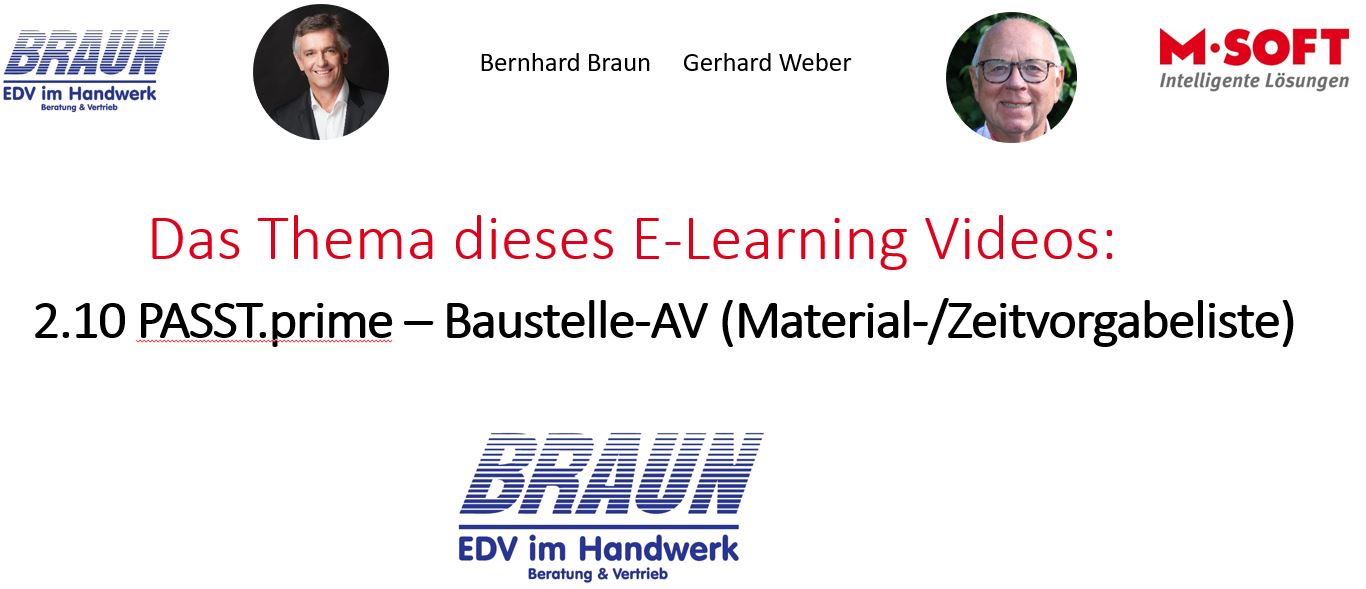 E-Learning Video 2.10: PASST.prime – Baustelle-AV (Material-/Zeitvorgabeliste)