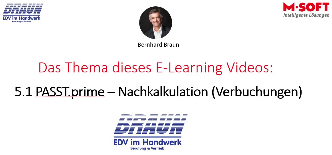 E-Learning Video 5.1: PASST.prime – Nachkalkulation – Verbuchungen (Lohn,Material, Fremdleistungen, Geräte)